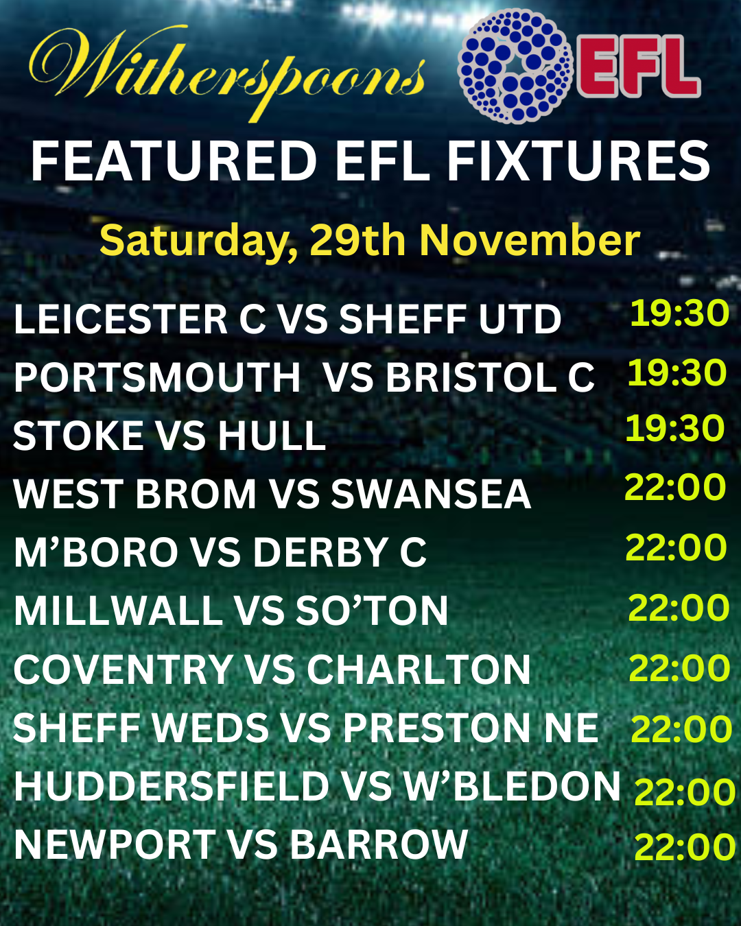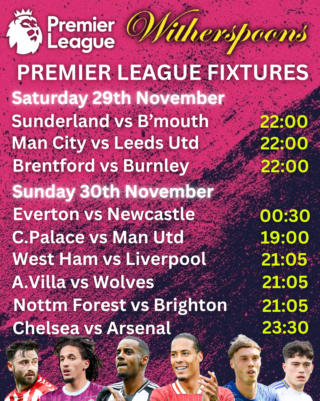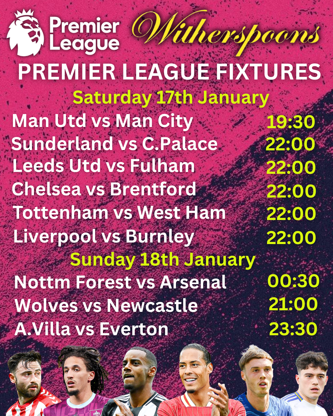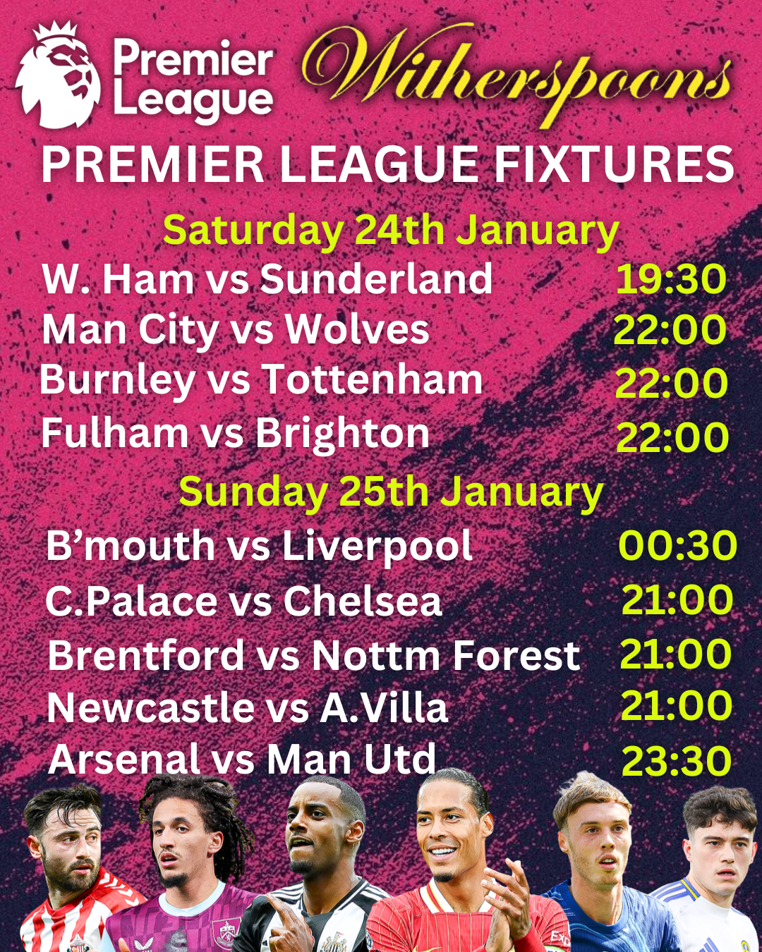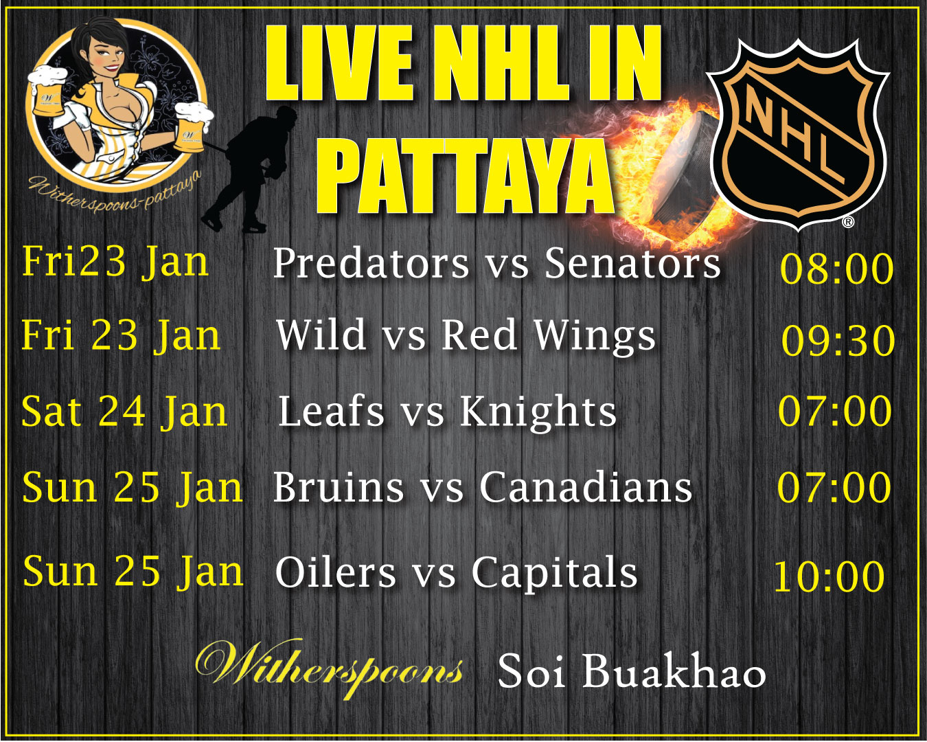 WITHERSPOONS PATTAYA LIVE SPORTS SCHEDULE