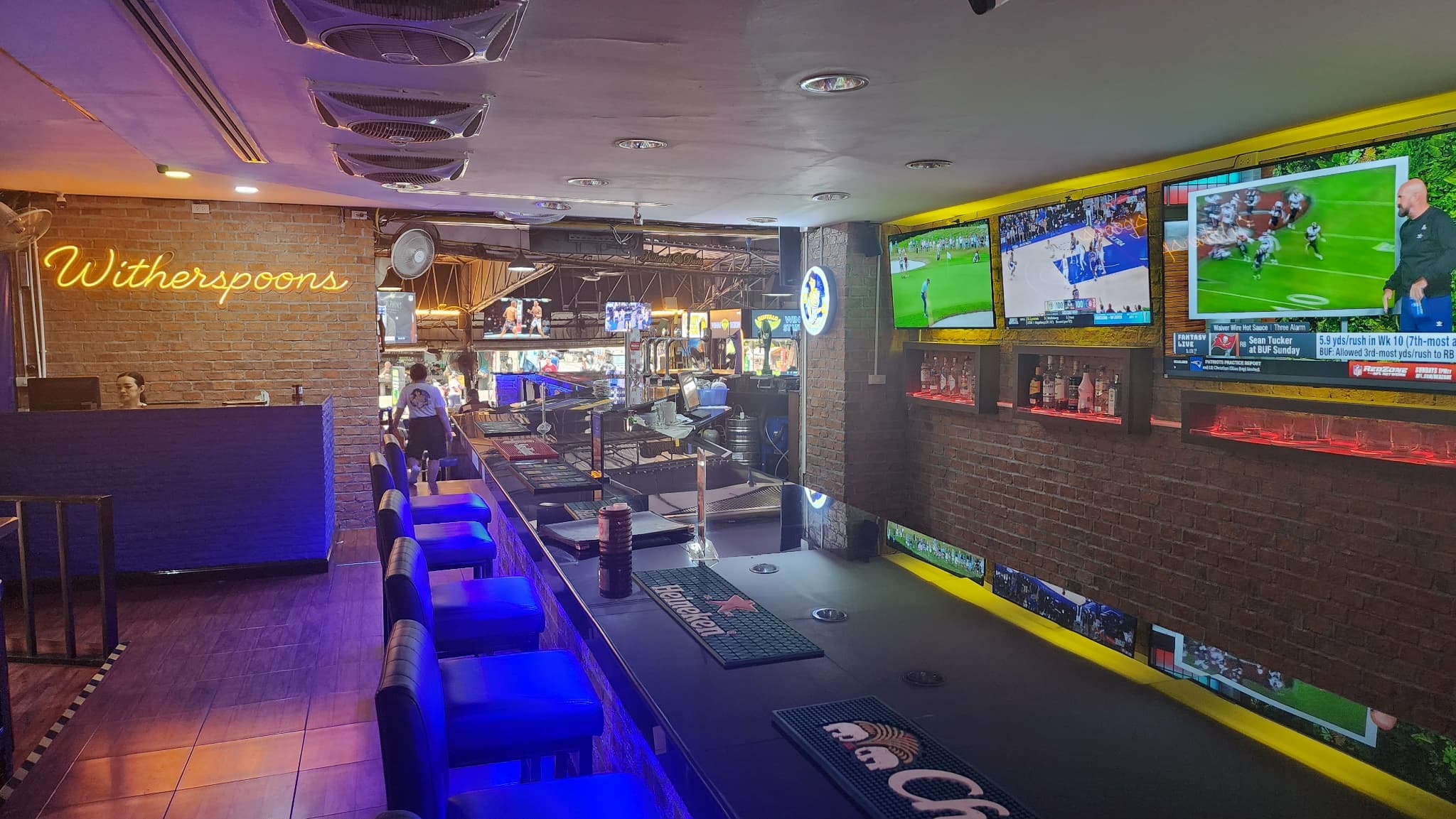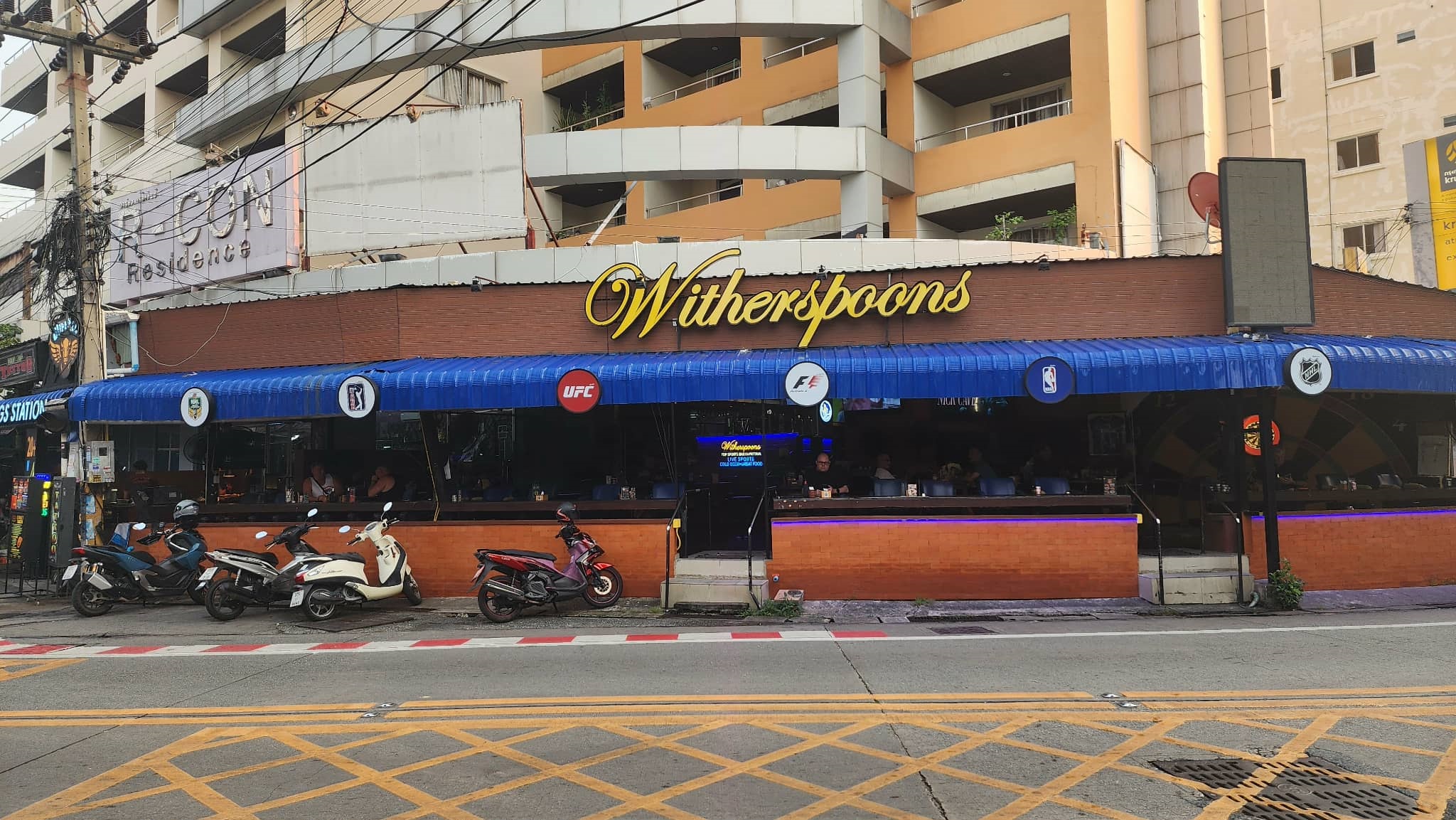 Witherspoons Pattaya is known as the top sports bar on Soi Buakhao, packed with 50+ TVs showing all the big live action from around the globe — Premier League, NHL, NFL, NBA, AFL, MLB and plenty more.